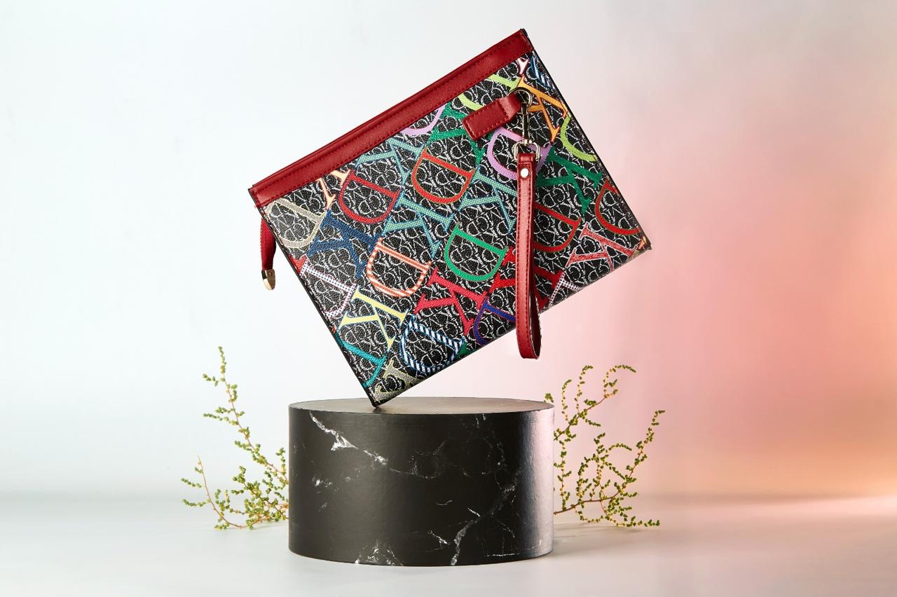 A red clutch bag is a chic accessory designed to be carried in hand or under the arm, providing just enough space for essentials like a phone, keys, and makeup.